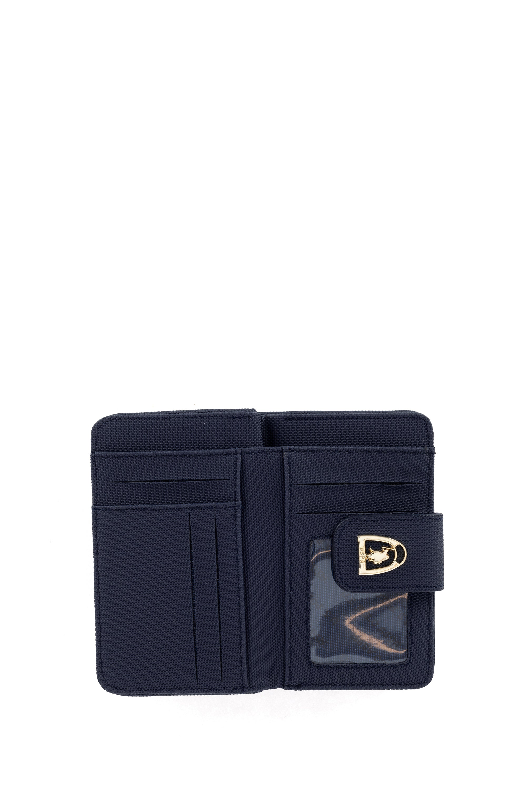 Elegantan novčanik u tamnoplavoj boji nudi savršenu kombinaciju funkcionalnosti i stila. Karakteriše ga sofisticirana tekstura koja osigurava trajnost i dugotrajno korištenje. Na prednjem dijelu novčanika nalazi se diskretan metalni detalj koji dodaje dodatnu notu luksuza. Ovaj novčanik je idealan dodatak za svakodnevne kombinacije, pružajući dovoljno prostora za novac, kartice i druge sitnice, a lako se može uklopiti sa raznim stilovima i odjevnim predmetima, čineći ga praktičnim izborom za svaku priliku.