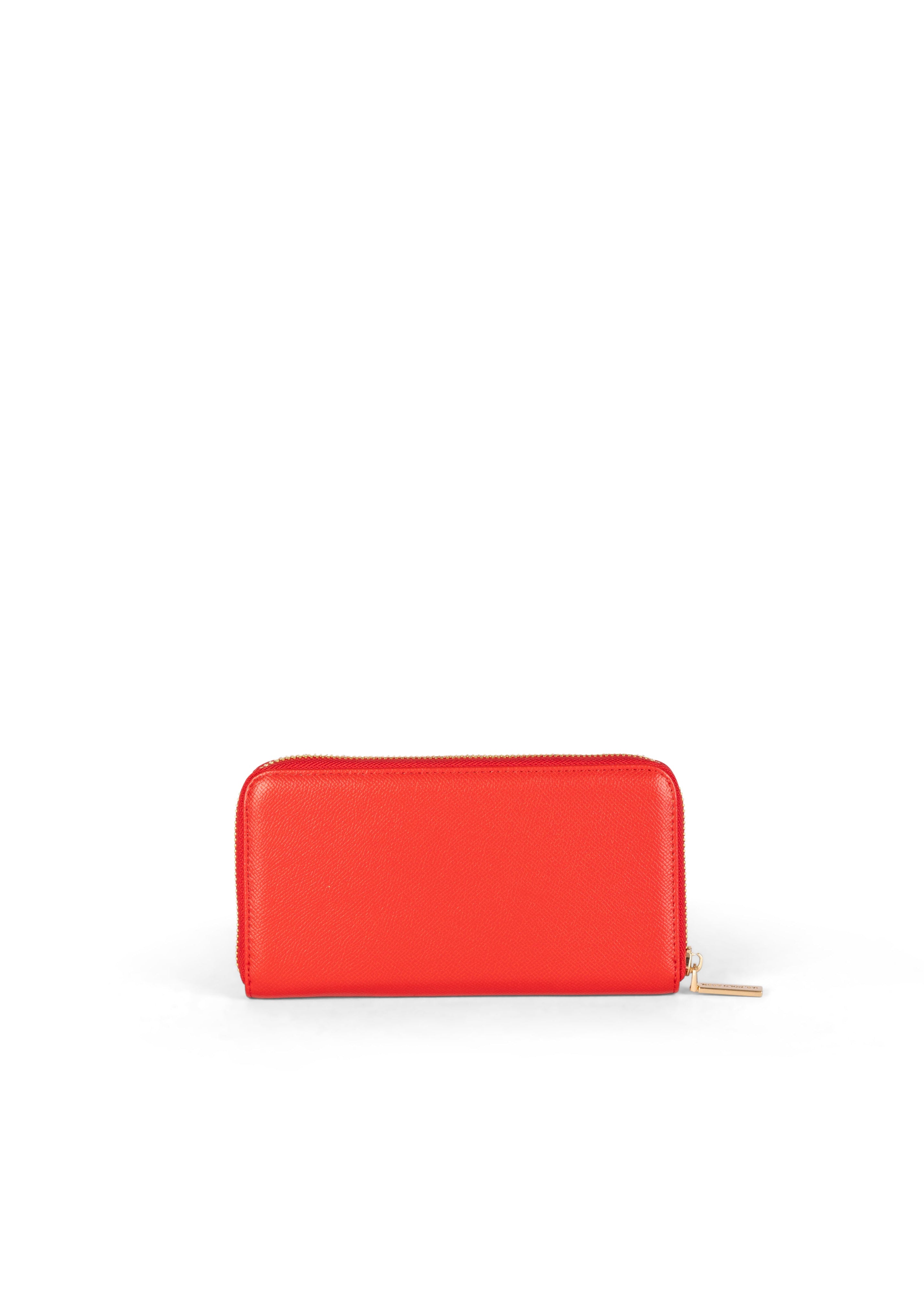 Elegantan novčanik u vibrantnoj crvenoj boji donosi dozu sofisticiranosti i stila. Njegova glatka površina izrađena je od visokokvalitetne kože, koja osigurava dugotrajnost i jednostavno održavanje. Novčanik je praktično dizajniran s više pregrada za novčanice, kartice i sitni novac, omogućavajući laku organizaciju vaših finansija. Na prednjoj strani nalazi se prepoznatljiv logo koji dodatno naglašava njegovu luksuznu prirodu. Ovaj novčanik je idealan dodatak za svakodnevne aktivnosti, bilo da idete na posao ili na večernji izlazak, a savršeno se uklapa s raznim modnim kombinacijama.